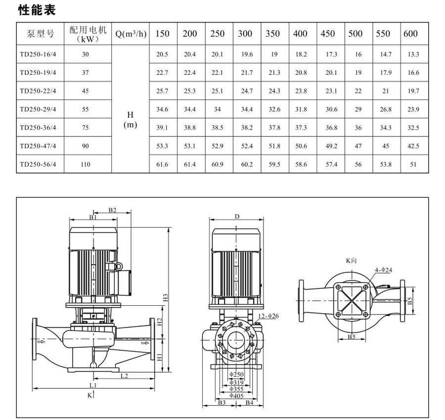 TD250系列單級管道離心泵,配有標準電機和機械密封。此類產品的結構與相近類型產品相比,更不易受到泵送液體中雜質的影響。產品設計為頂部可拉出的拆裝形式,其可以在不影響管路系統的情況下對泵進行維修。所有泵采用創新式便拆式機械密封,更好機械密封無需拆卸電機。